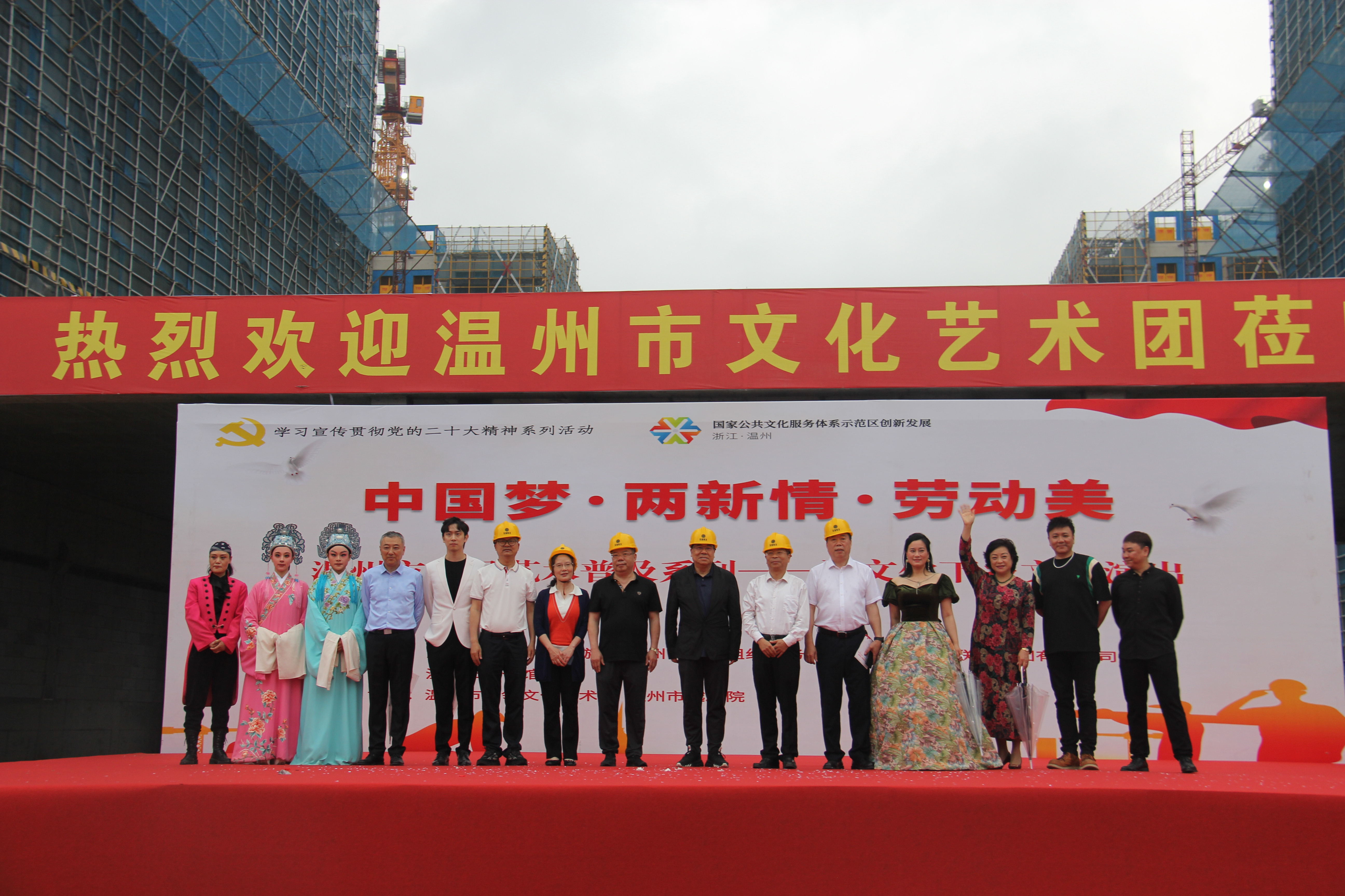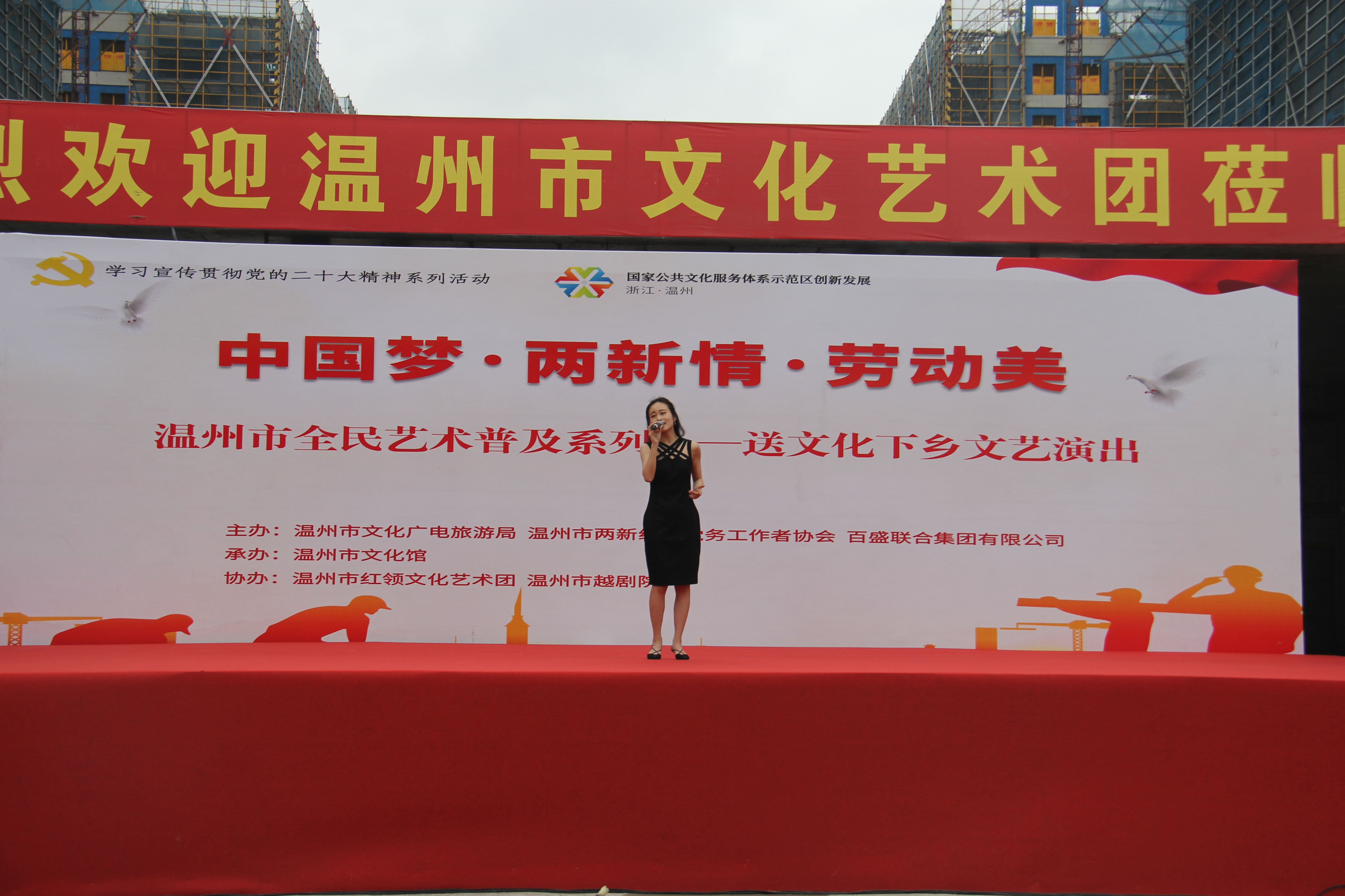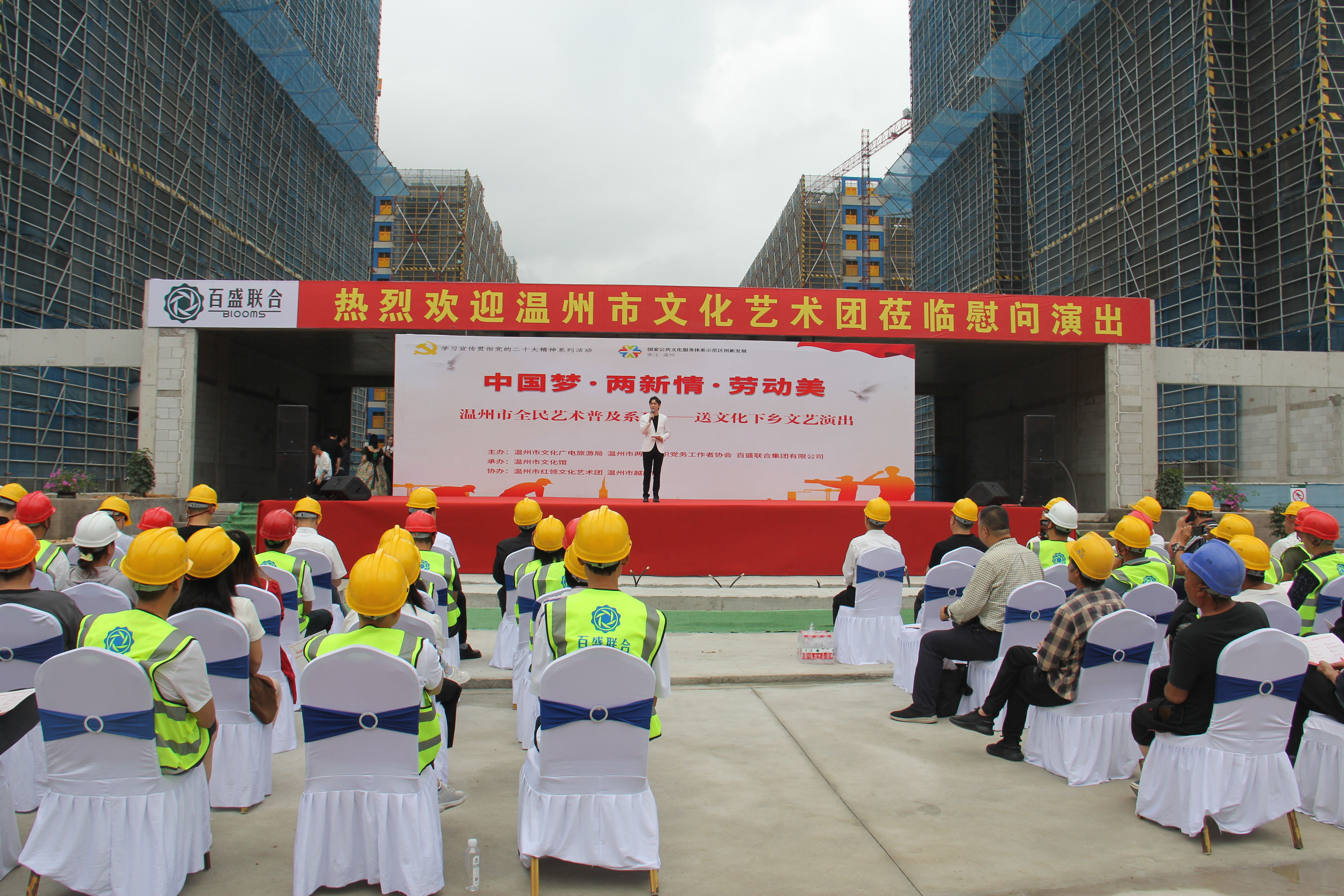 為深入學(xué)習(xí)宣傳貫徹黨的二十大精神,進(jìn)一步豐富廣大勞動(dòng)者的精神文化生活,提振廣大勞動(dòng)者團(tuán)結(jié)一心、干事創(chuàng)業(yè)的精氣神,營(yíng)造勞動(dòng)最光榮、勞動(dòng)最崇高、勞動(dòng)最美麗的濃厚氛圍。5月16日下午,由溫州市文化廣電旅游局、溫州市非公有制經(jīng)濟(jì)組織和社會(huì)組織黨務(wù)工作者協(xié)會(huì)、百盛聯(lián)合集團(tuán)有限公司主辦,溫州市文化館承辦,溫州市紅領(lǐng)文化藝術(shù)團(tuán)、溫州市越劇院協(xié)辦的“中國(guó)夢(mèng)·兩新情·勞動(dòng)美”紅五月慰問(wèn)演出走進(jìn)百盛聯(lián)合集團(tuán)有限公司建設(shè)工地,給500余名建設(shè)工地勞動(dòng)者獻(xiàn)上了一場(chǎng)精彩紛呈的文化藝術(shù)盛宴。