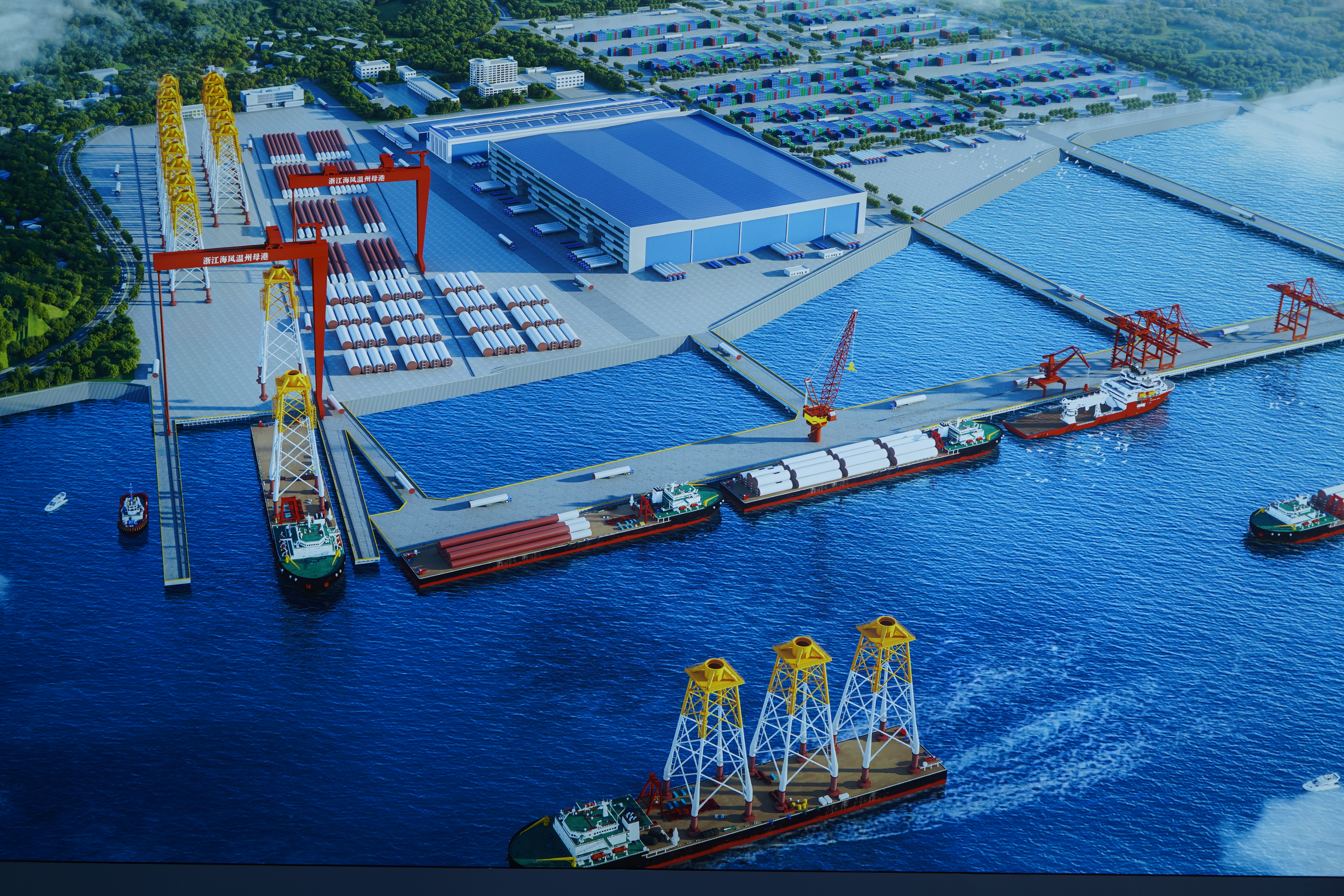 根據規劃,風電母港由溫州洞頭核心區、寧波象山拓展區兩大區塊組成,以風機基礎總裝、核心部件制造、運維服務管理為核心功能,并集研發試驗、認證檢測、培訓交流、商貿物流等功能于一體。力爭到2030年形成“一鏈四高地”,即風電全產業鏈集聚高地、技術創新策源高地、建設運維高地和港產城聯動發展高地。